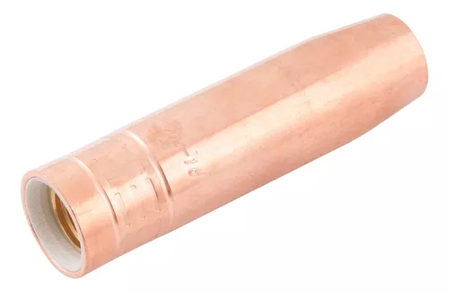 Bocal único cônico com rosca, ponteira única para tochas de solda MIG/MAG, produzidas a partir de material de cobre de alta resistência, com paredes grossas para minimizar o desgaste prematuro.